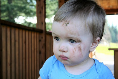 The mud must have been quite soft, for when he took a step off of the front porch and landed on his side, he didn't utter a sound. He just looked up at me helplessly and quietly laid there until I lifted him up. I couldn't resist a snapshot of my mud-streaked baby.